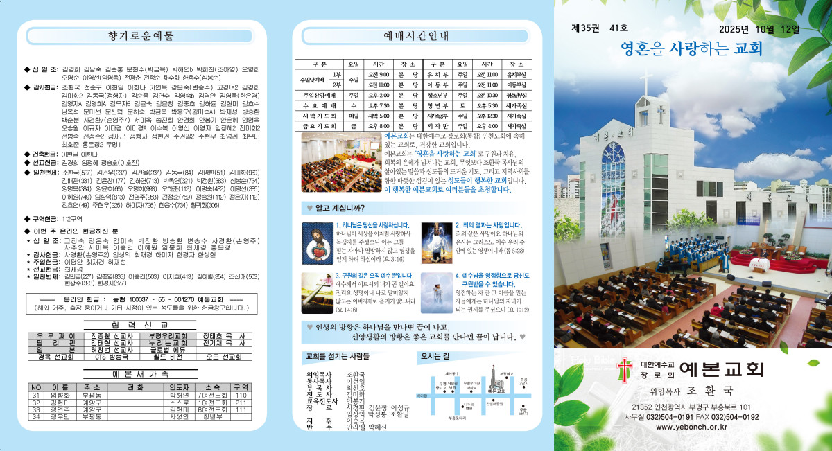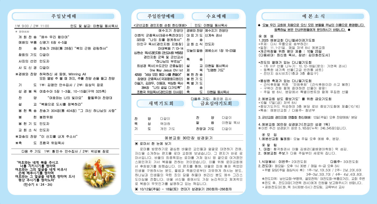 10월 12일 주보 페이지 정보 작성자 관리자 댓글 0건 조회 73회 작성일 25-10-11 20:38 본문 10월 12일 주보 목록 이전글10월 19일 주보 25.10.16 다음글10월 5일 주보 25.10.04 댓글목록 댓글목록 등록된 댓글이 없습니다.